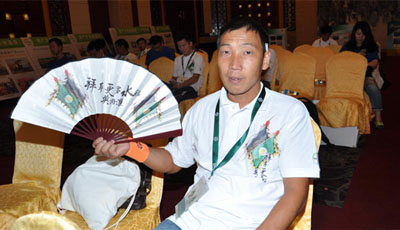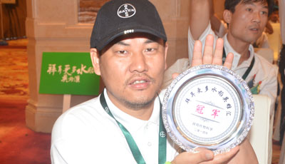 來自常德的種植大戶向鳳濤展示冠軍隊(duì)獎(jiǎng)牌。