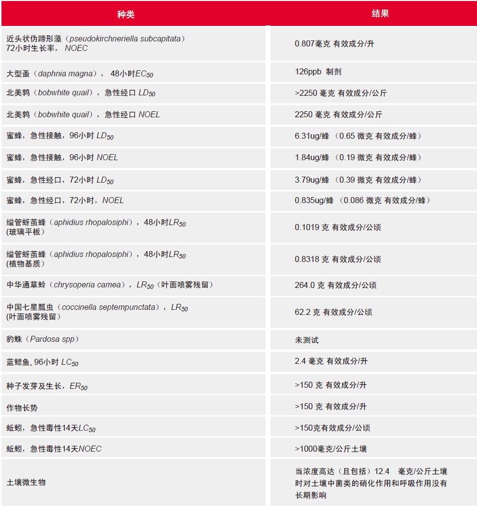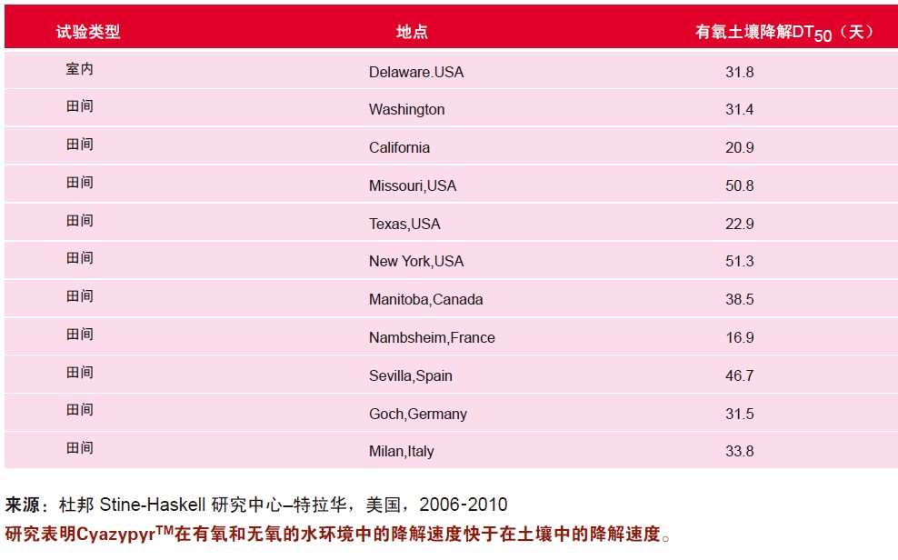 研究表明當(dāng)按照標(biāo)簽推薦方法使用時(shí),CyazypyrTM對(duì)環(huán)境影響非常低