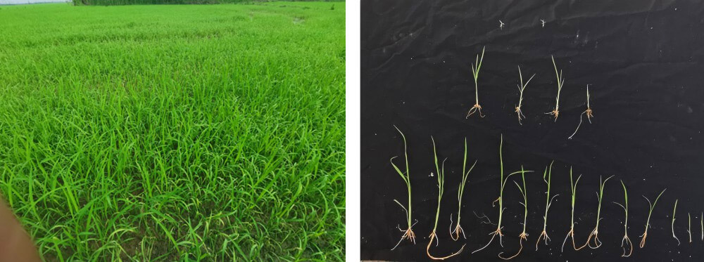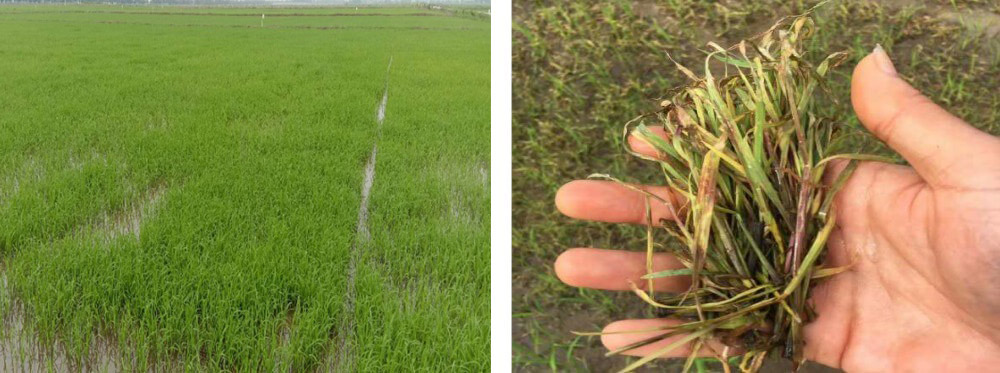 FMC寬心飛模式是每組配一個專業(yè)技術(shù)老師負(fù)責(zé)根據(jù)田間實(shí)際情況,包括: 水稻苗大小,雜草類型以及大小,往年用藥習(xí)慣,稗草的抗性程度調(diào)整施藥方案,由專業(yè)的飛手教練實(shí)施操作。施藥十天后,我們對所有田塊進(jìn)行回訪,田間實(shí)際展現(xiàn)的除草效果令人驚喜。
