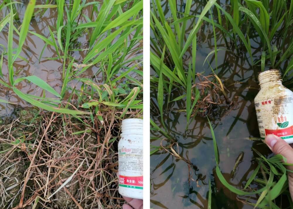 畝用藥量:120ml稻青青+100ml20%氰氟草酯70ml韓秋好+100ml10%氰氟草酯