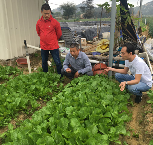 (4月26日,農戶,收菜商等人一起來菜地看效果)