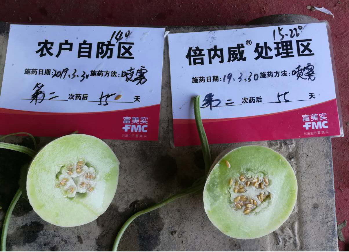 病毒病是當地種瓜的主要問題,由蟲源傳播,并轉移危害。一般常規(guī)藥劑很難綜合控制害蟲傳播病毒病,難以達到防治效果,給瓜農帶來損失,導致品質和產量下降。