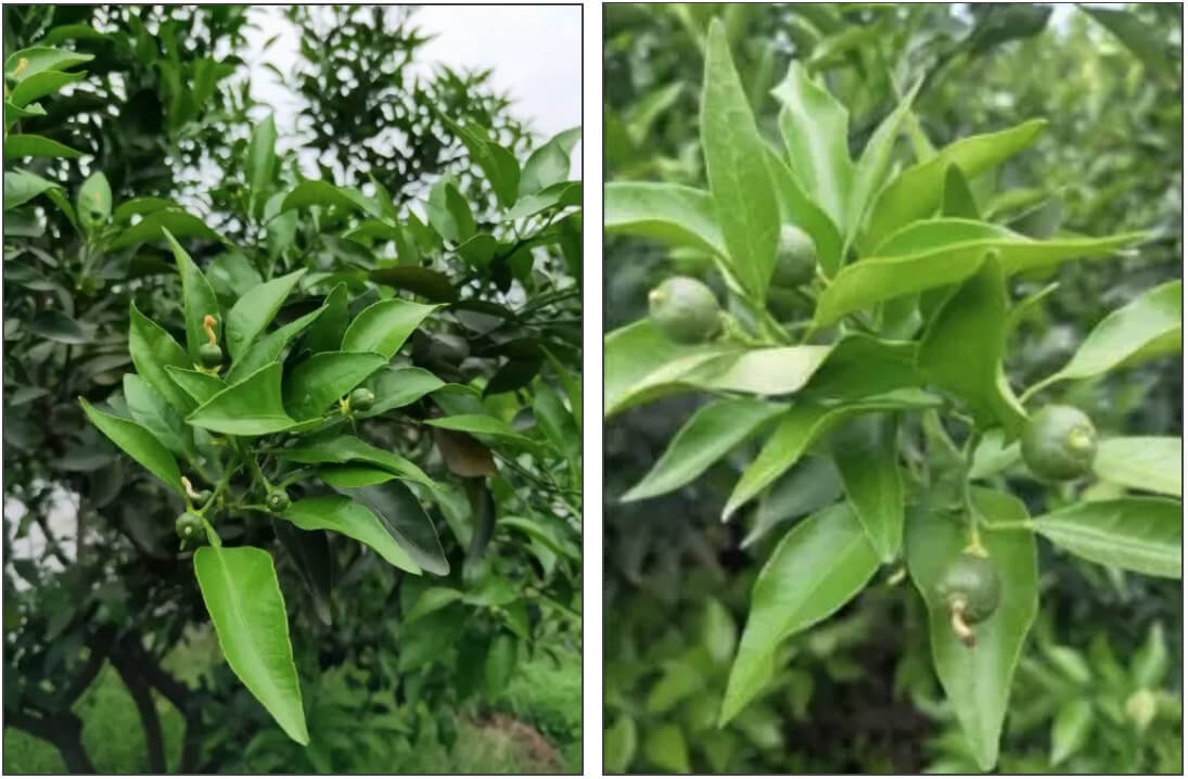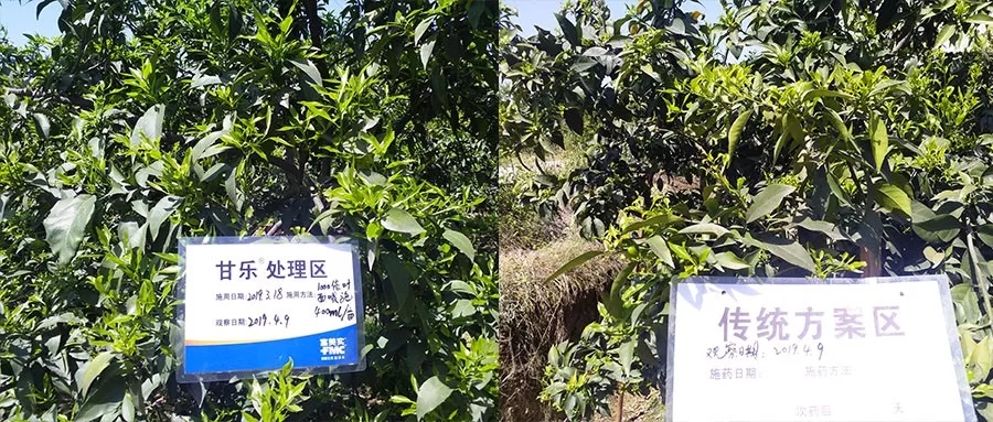 今年橘樹(shù)剛萌芽出來(lái)的新葉有點(diǎn)卷,不厚實(shí)不夠綠;我嘗試用免費(fèi)申請(qǐng)的甘樂(lè)樣品按照推薦用量750倍進(jìn)行了葉噴,使用后不到10天,柑橘葉片明顯轉(zhuǎn)綠,手感比較厚實(shí),葉片明顯舒展開(kāi)了,對(duì)比效果一眼就能看出!我身邊很多的種植戶朋友進(jìn)我園子都會(huì)說(shuō)今年的果子看上去長(zhǎng)得更好了。