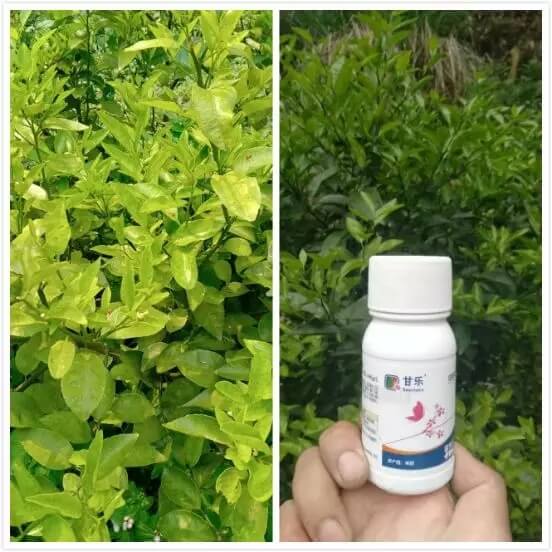 使用甘樂®后沙糖桔葉片明顯轉(zhuǎn)綠,葉片變厚,對比明顯。
