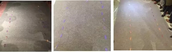 通過試紙,結果顯而易見,第一種和第三種都出現(xiàn)了漏噴、重噴的情況,明顯中間的第二種平推式扇形噴頭,“作物”受藥面積更均勻,密度更高,同時防治效果也會更好,為農(nóng)戶們減輕了勞動強度,避免返工。