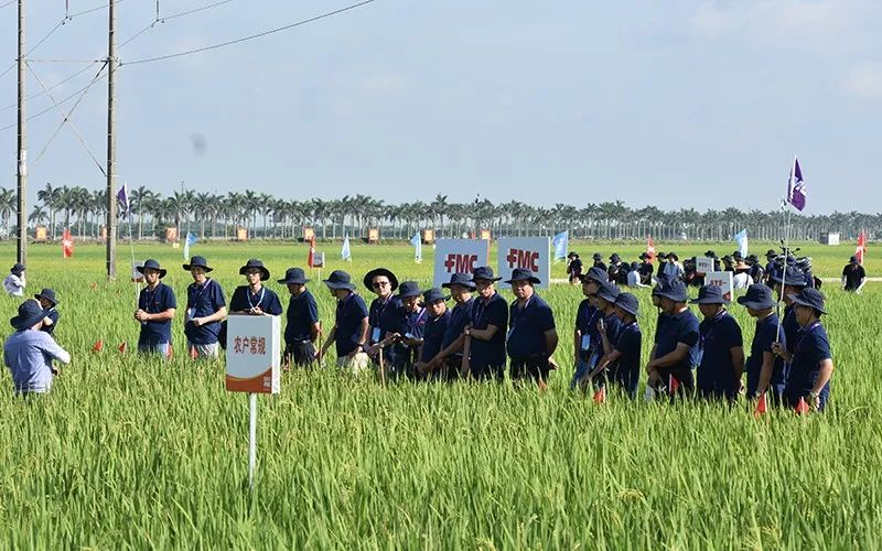 在富美實殺蟲劑產(chǎn)品經(jīng)理袁雪松的主持下,參會人員一同走進稻田,近距離觀看康寬早用技術(shù)的效果。