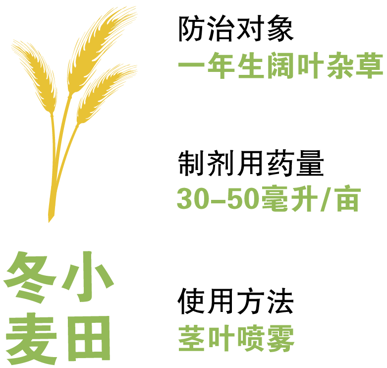 殺草速度快:能快速的防除麥田闊葉雜草?s短雜草與小麥共生危害期,增產(chǎn)更顯著。