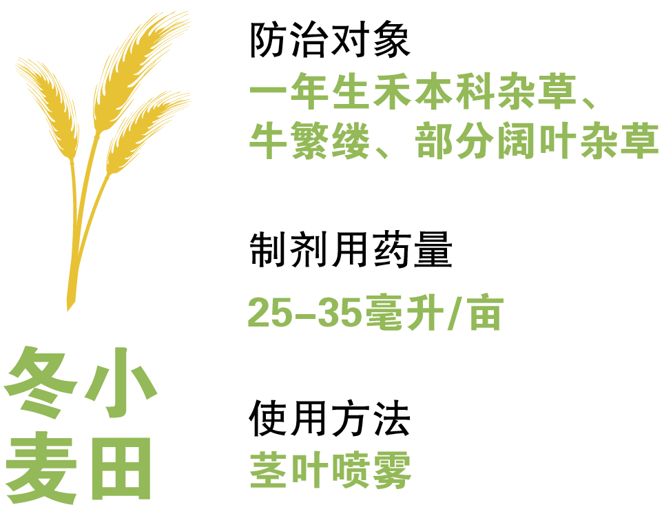 正確使用,高效安全:針對(duì)不同雜草,冬前、春季正確噴施,效果顯著。