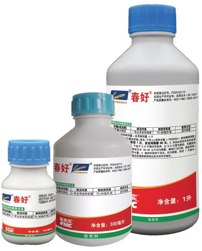 春好® 是美國(guó)富美實(shí)(FMC) 公司推出的一種新型、高效、專利稻田除草劑,能一次性有效防除多種禾本科雜草,尤其對(duì)直播稻田難防的稗草、千金子、馬唐、牛筋草有特效。春好® 對(duì)水稻安全,使用方便,省工省力,增產(chǎn)增收,是農(nóng)民水稻田除草的好幫手。