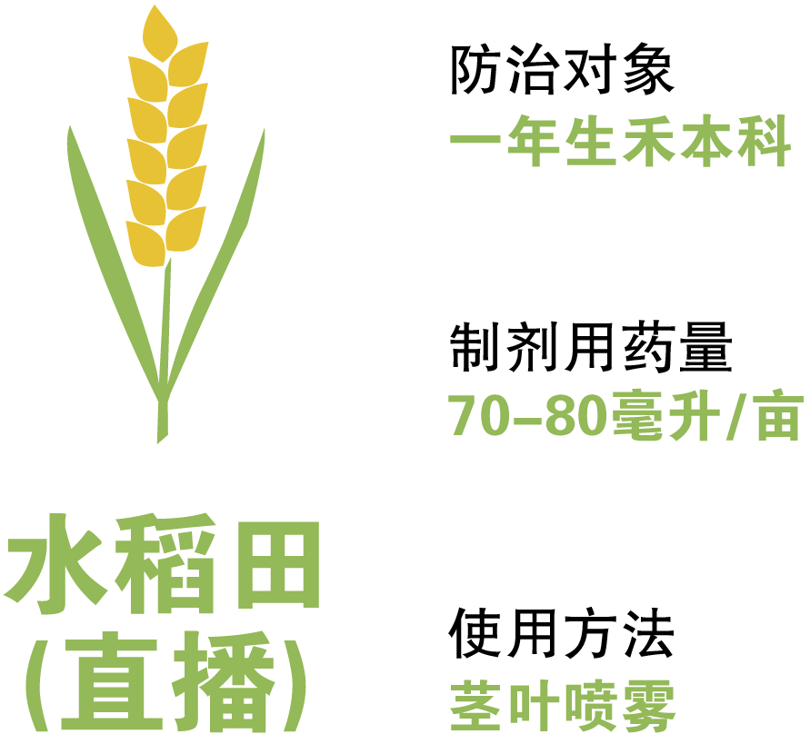 藥效獨(dú)特:一次性防除稗草、千金子、馬唐、牛筋草等多種一年生禾本科雜草。