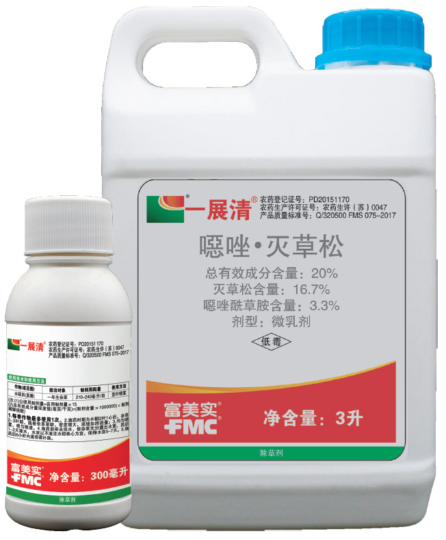 一展清 ® 是由美國(guó)富美實(shí)公司(FMC) 開(kāi)發(fā)的專(zhuān)利水稻田除草劑,能一次性有效防除水稻田多種禾本科雜草和大部分闊葉雜草,如:稗草、千金子、馬唐、牛筋草、陌上菜、丁香蓼、水莧菜、野慈姑、澤瀉、鱧腸等,對(duì)部分莎草有很好的控制作用。