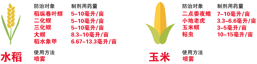 高效防蟲(chóng): 快速阻止害蟲(chóng)取食,降低蟲(chóng)口基數(shù),對(duì)多種鱗翅目害蟲(chóng)以及稻水象甲等防效穩(wěn)定可靠。