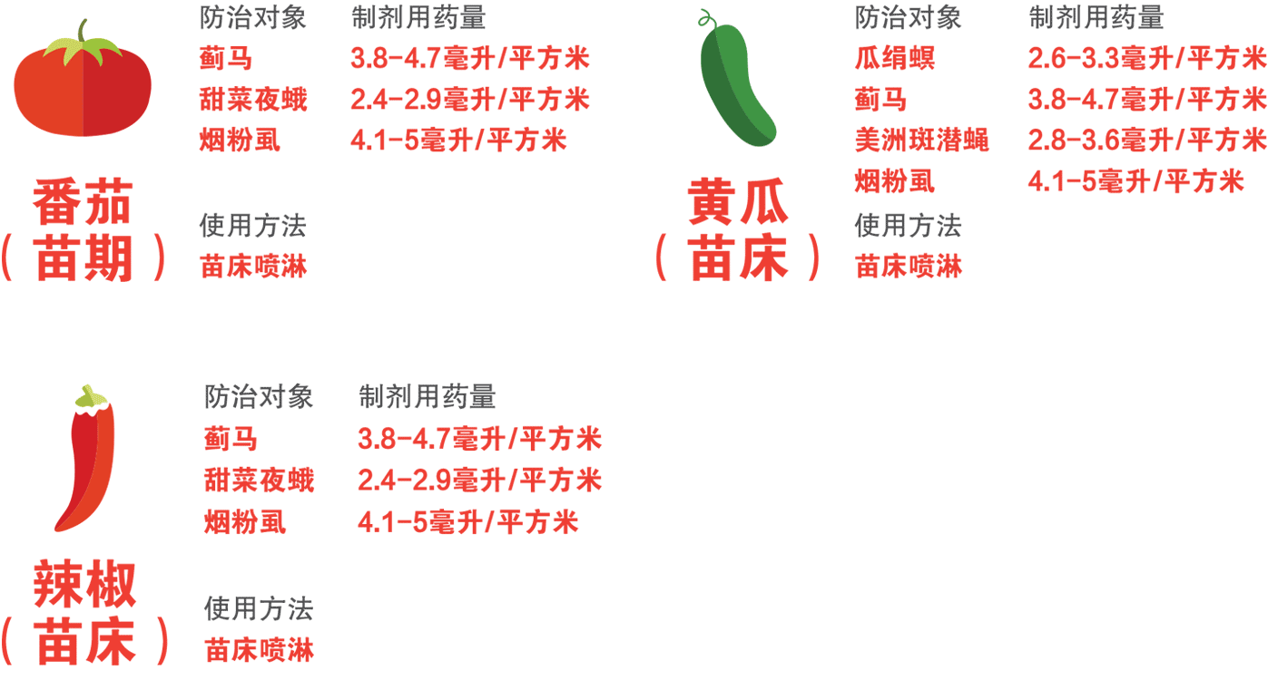 多譜防蟲,壓低病害:不僅防治小菜蛾等咀嚼式口器害蟲,而且防治斑潛蠅、薊馬、煙粉虱等刺吸式口器害蟲,并有效壓制病毒病的傳播。