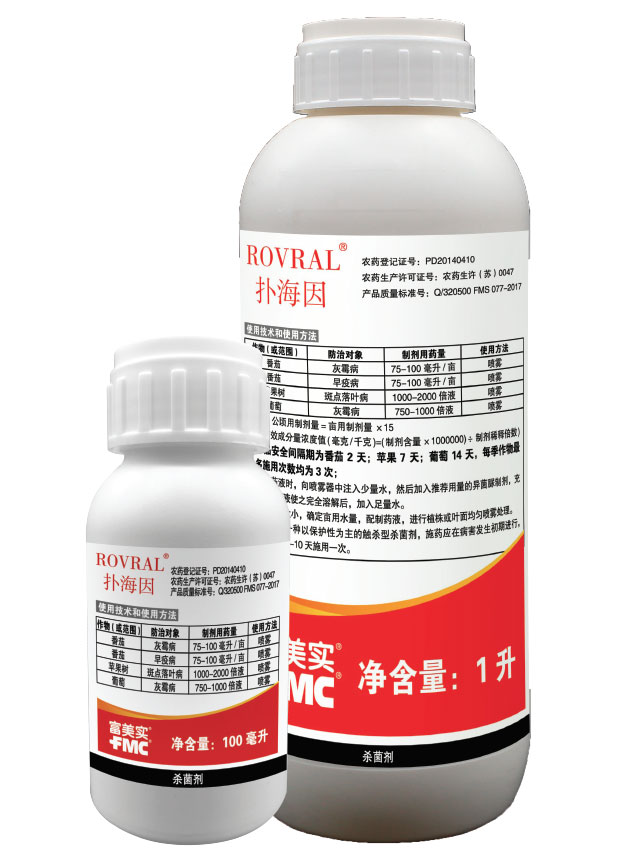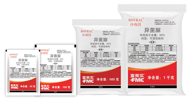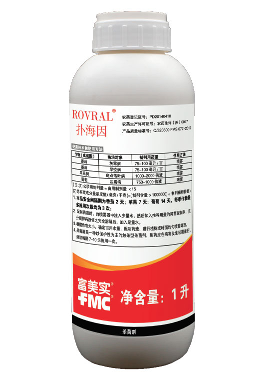 撲海因® 是美國富美實(FMC)公司推出的二甲酰亞胺類的觸殺型保護性殺菌劑,兼有一定的治療作用,可有效防治對苯并咪唑類殺菌劑產(chǎn)生抗性的病菌;廣譜、高效,安全性好,適用作物范圍廣,有效防治灰霉病,早疫病等;劑型豐富,混配性好。