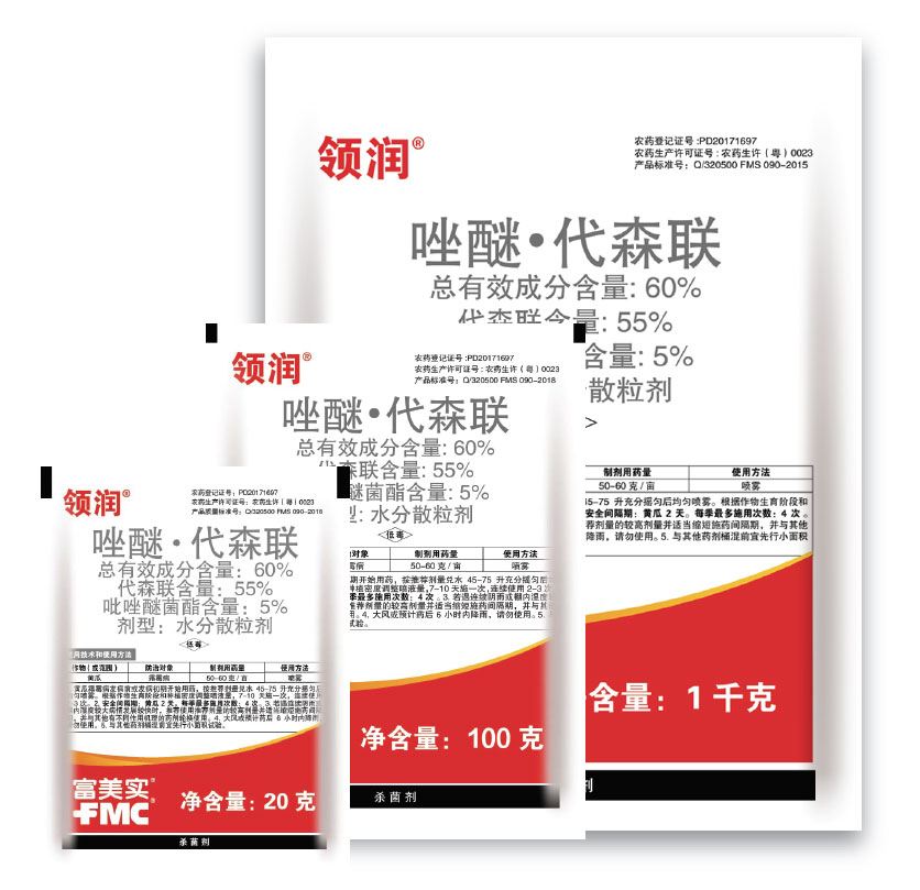 領(lǐng)潤(rùn)® 是美國(guó)富美實(shí)(FMC)公司推出的兼具保護(hù)和治療雙重功效的廣譜型殺菌劑,采用全球領(lǐng)先的干懸浮造粒工藝技術(shù)精制而成,有效防止病菌孢子的萌發(fā)和侵入,保護(hù)葉片免受病害侵?jǐn)_,使用后作物葉片更濃綠,激發(fā)作物自身健康能效,增強(qiáng)作物長(zhǎng)勢(shì),幫助種植者安心豐收。