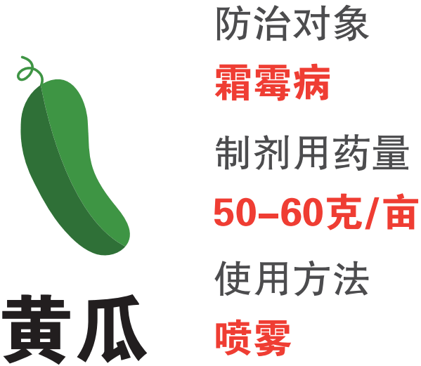 ●黃瓜霜霉病發(fā)病前或發(fā)病初期開(kāi)始用藥,按推薦劑量?jī)端?5-75升充分搖勻后均勻噴霧。根據(jù)作物生育階段和種植密度噴液量,7-10天施一次,選續(xù)使用2-3次。