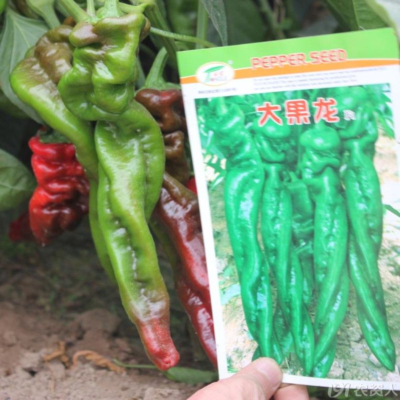 大果龍是中早熟一代雜交龍椒品種,株高50-60cm,果長28cm左右,果徑4cm左右,青果深綠色,老熟后紅色,辣味濃香,大果160g左右,畝產(chǎn)4000-5000kg,生長速度快,連續(xù)坐果能力強(qiáng),抗逆性強(qiáng),是目前代替豬大腸螺絲椒主要品種之一。請百度“大果龍椒”了解詳情。