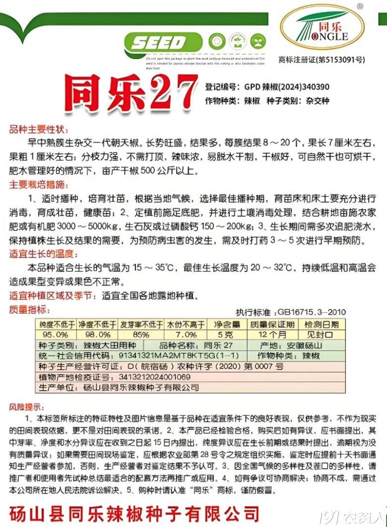同樂27是早中熟簇生雜交一代朝天椒。長勢旺盛,結(jié)果多,每簇結(jié)果8-20個,果長7厘米左右,果粗1厘米左右。分枝力強,不需打頂,辣味濃,易脫水干制,干椒賣相好,可自然干也可烘干,肥水管理好的情況下,畝產(chǎn)干椒500公斤以上。